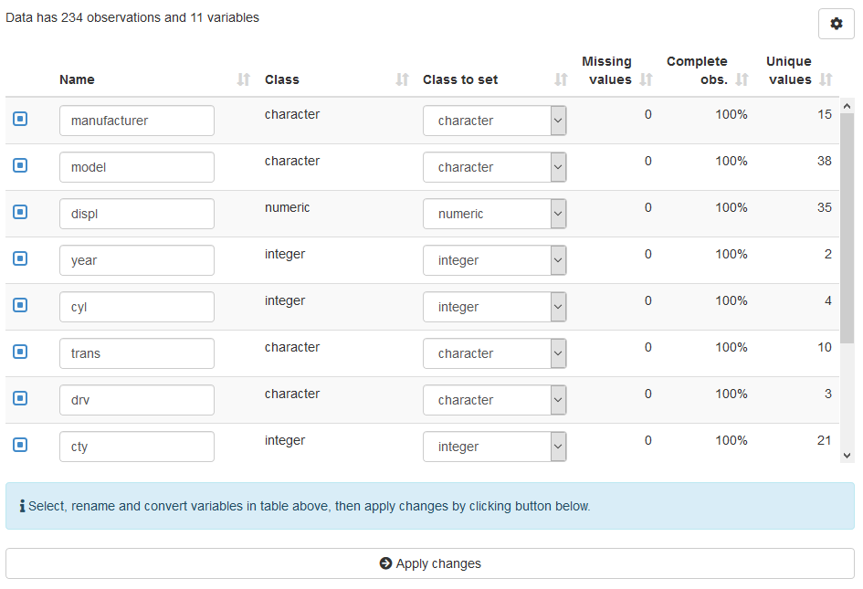 This package provides custom shiny modules to import data from various sources, select, rename and convert variables in a dataset and validate content with validate package.