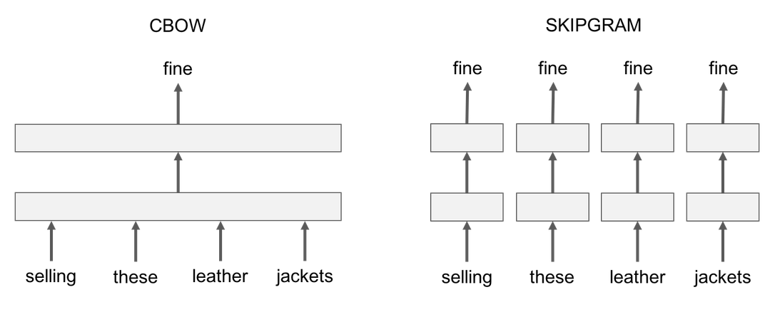 The official website of the fasttext algorithm includes more details regarding the supervised & unsupervised functions. The following image shows the difference between cbow and skipgram (models to compute word representations)