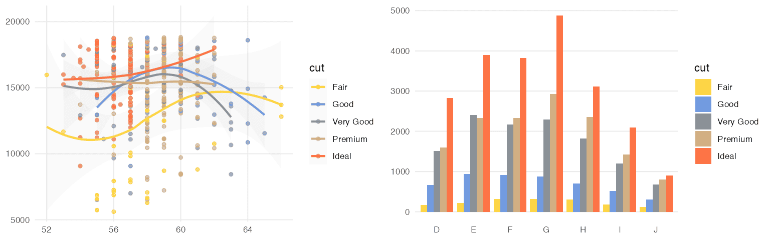 ggsci offers a collection of ggplot2 color palettes inspired by scientific journals, data visualization libraries, science fiction movies, and TV shows.