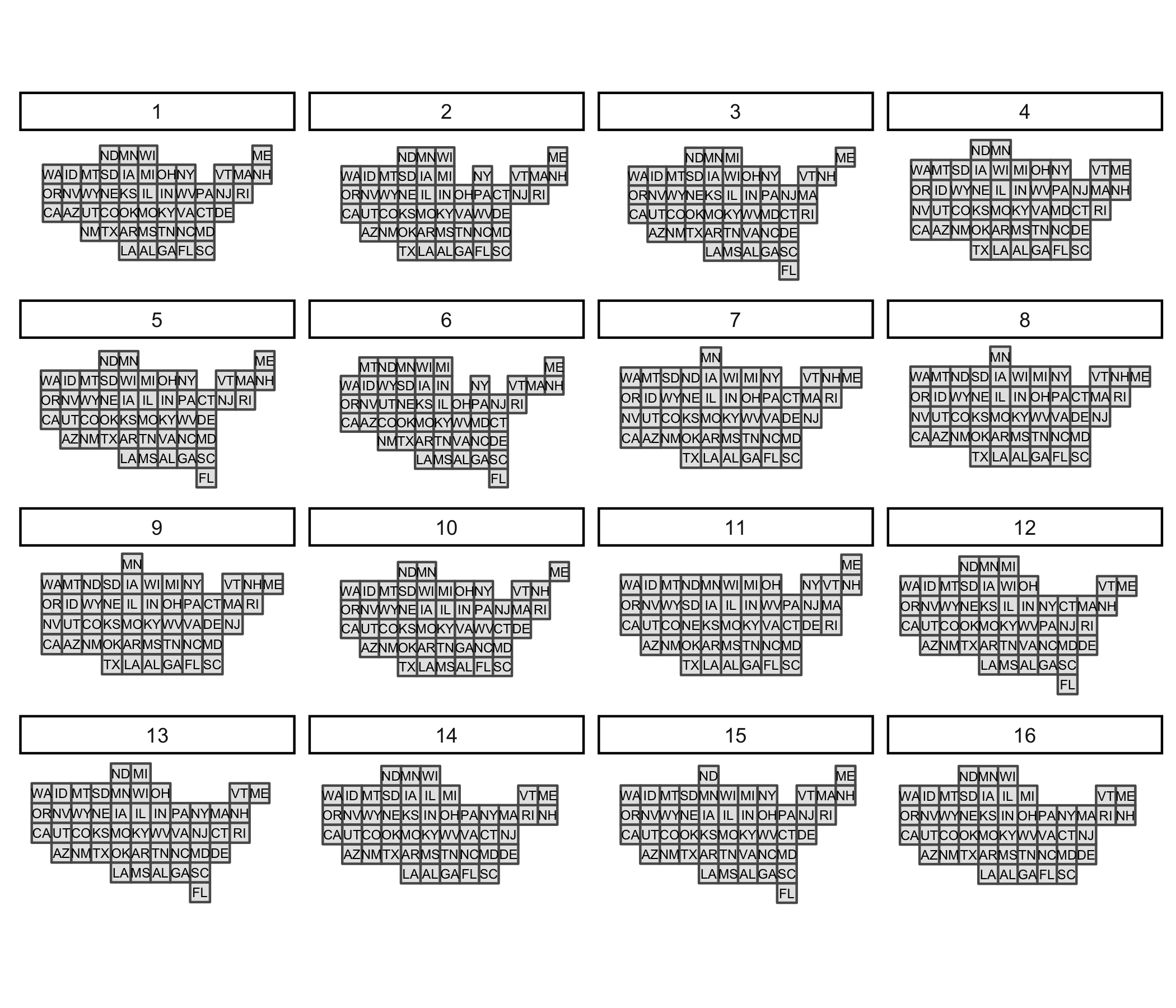 To create and compare more than one tile map, the many_maps() function can be used. In the following example, 16 candidate tile maps are generated and plotted.